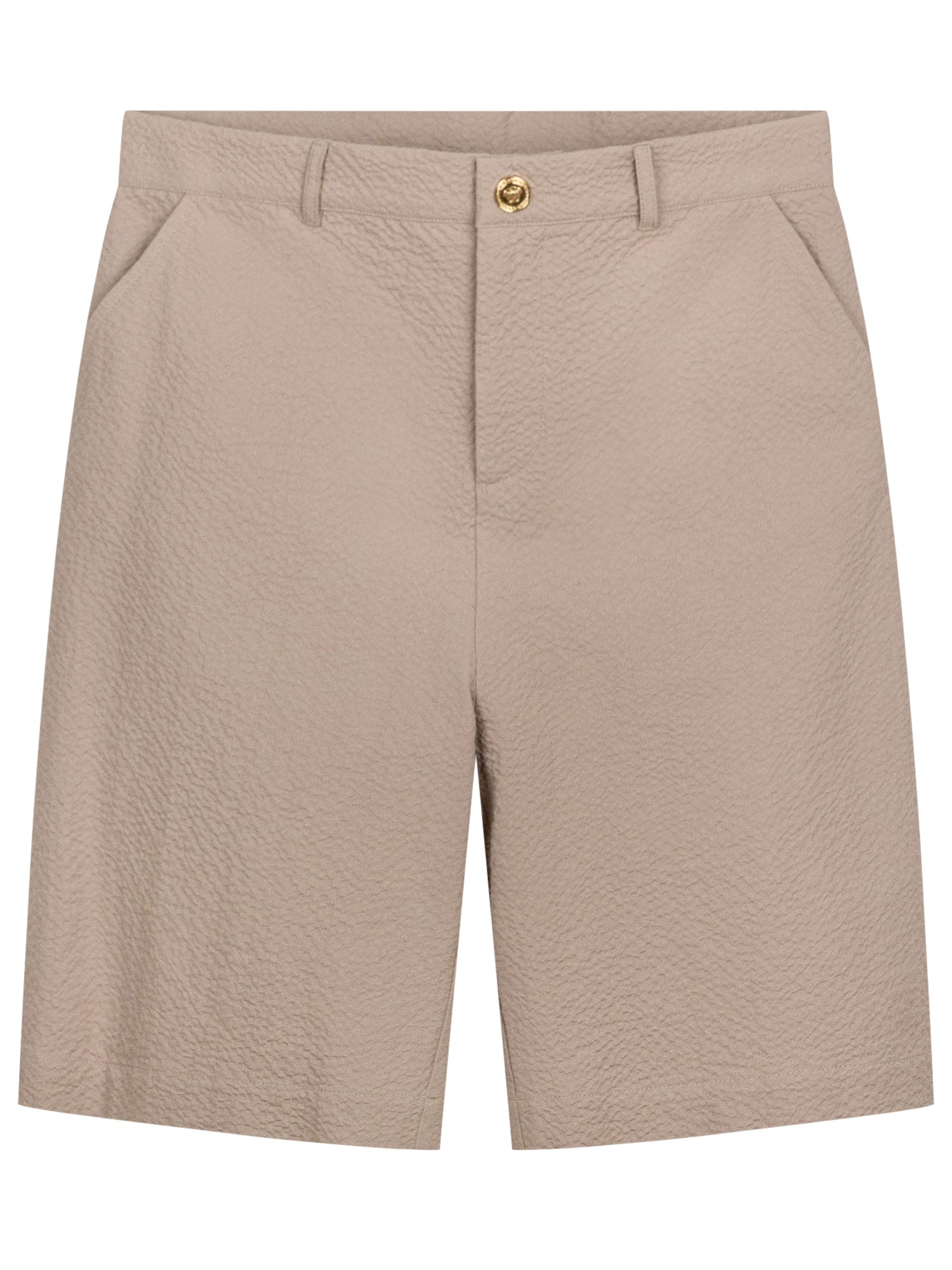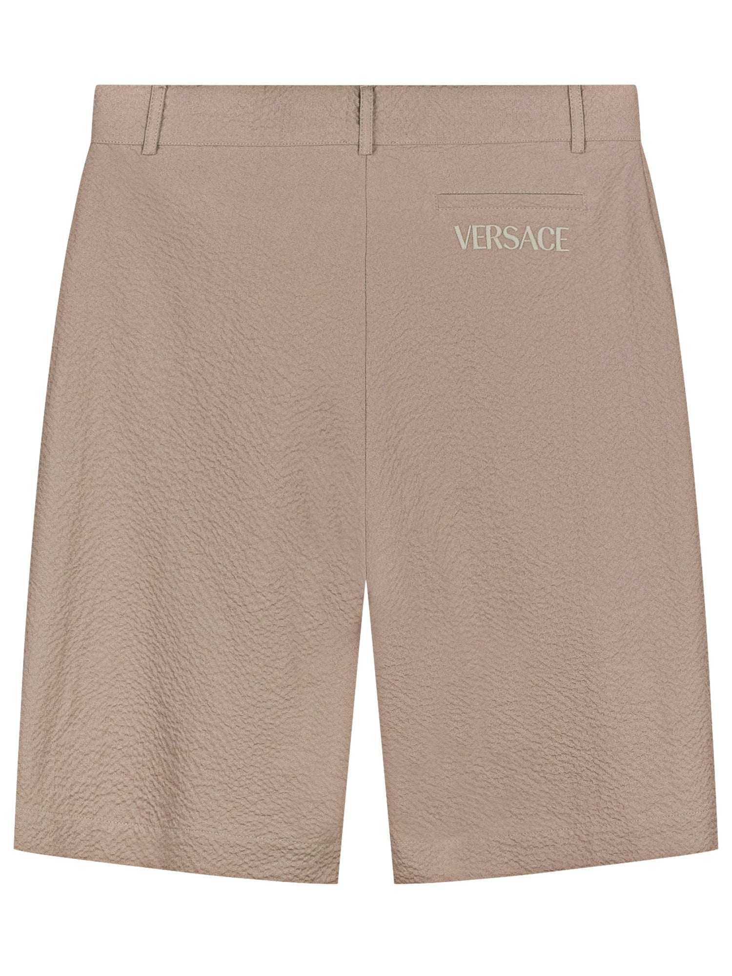 Shorts in cotone beige. Tasche laterali. Passanti per cintiura. Chiusura con zip e bottone. Logo sul retro con scritta.