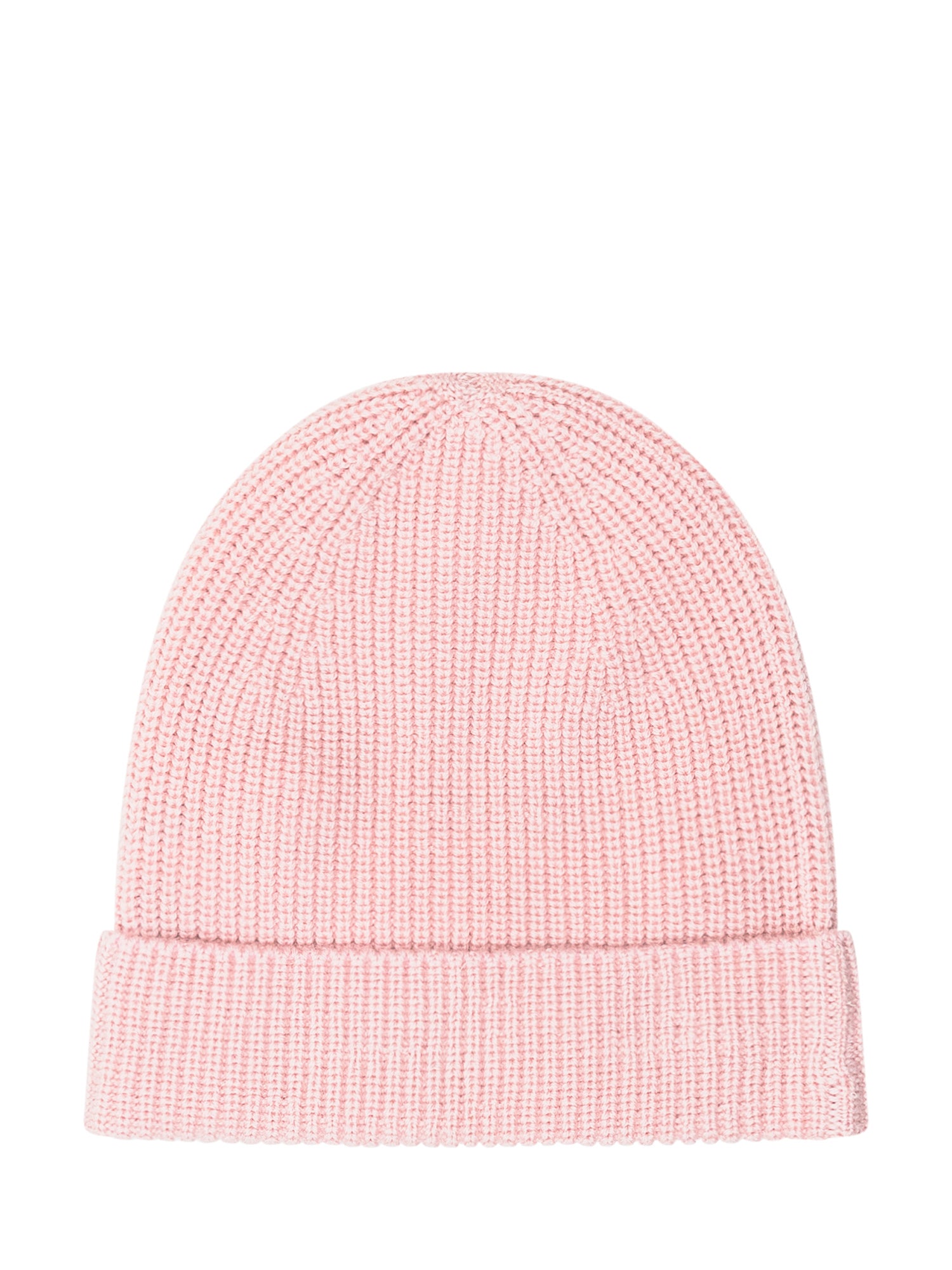 Beanie Versace Kids in morbida lana rosa, con risvolto e iconico logo Medusa ricamato in oro.