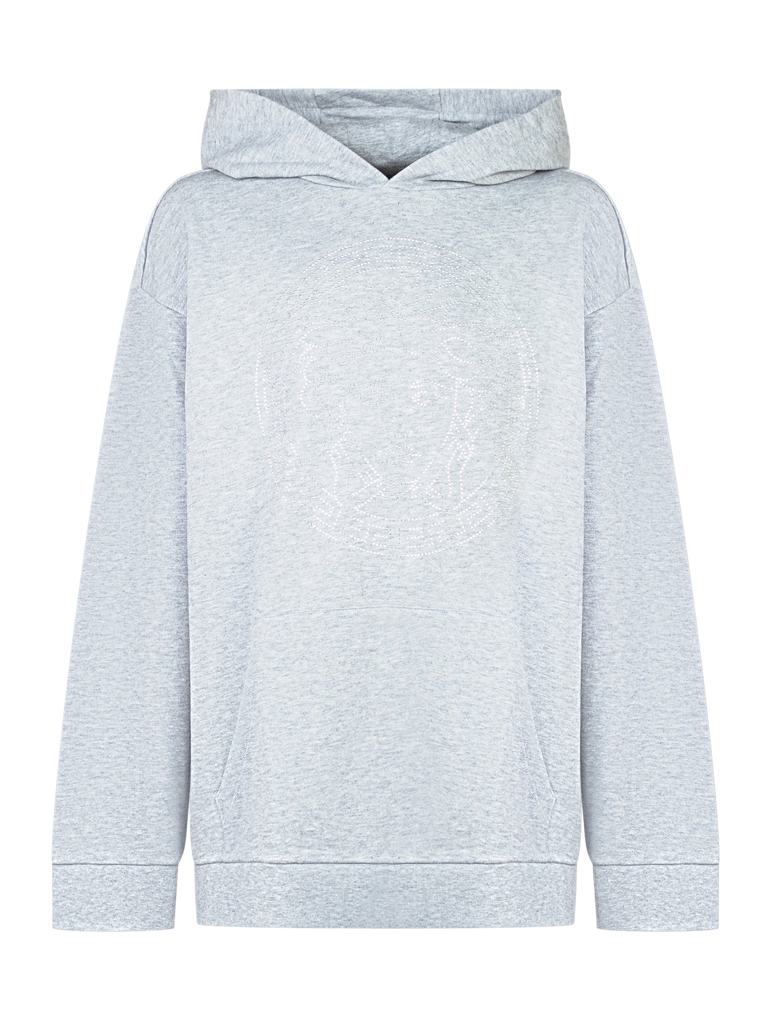 Felpa grigia con cappuccio Versace Kids, impreziosita dal logo Medusa realizzato in strass sul davanti.