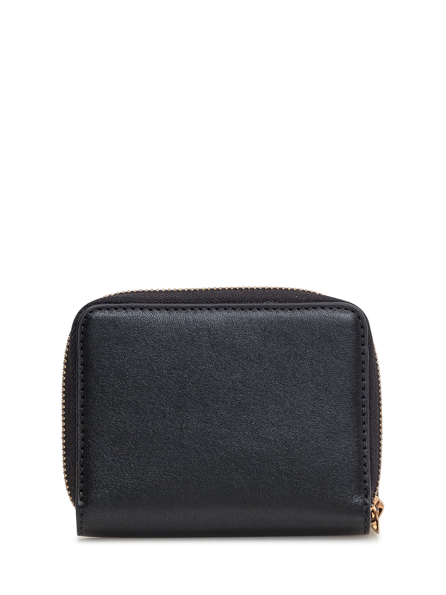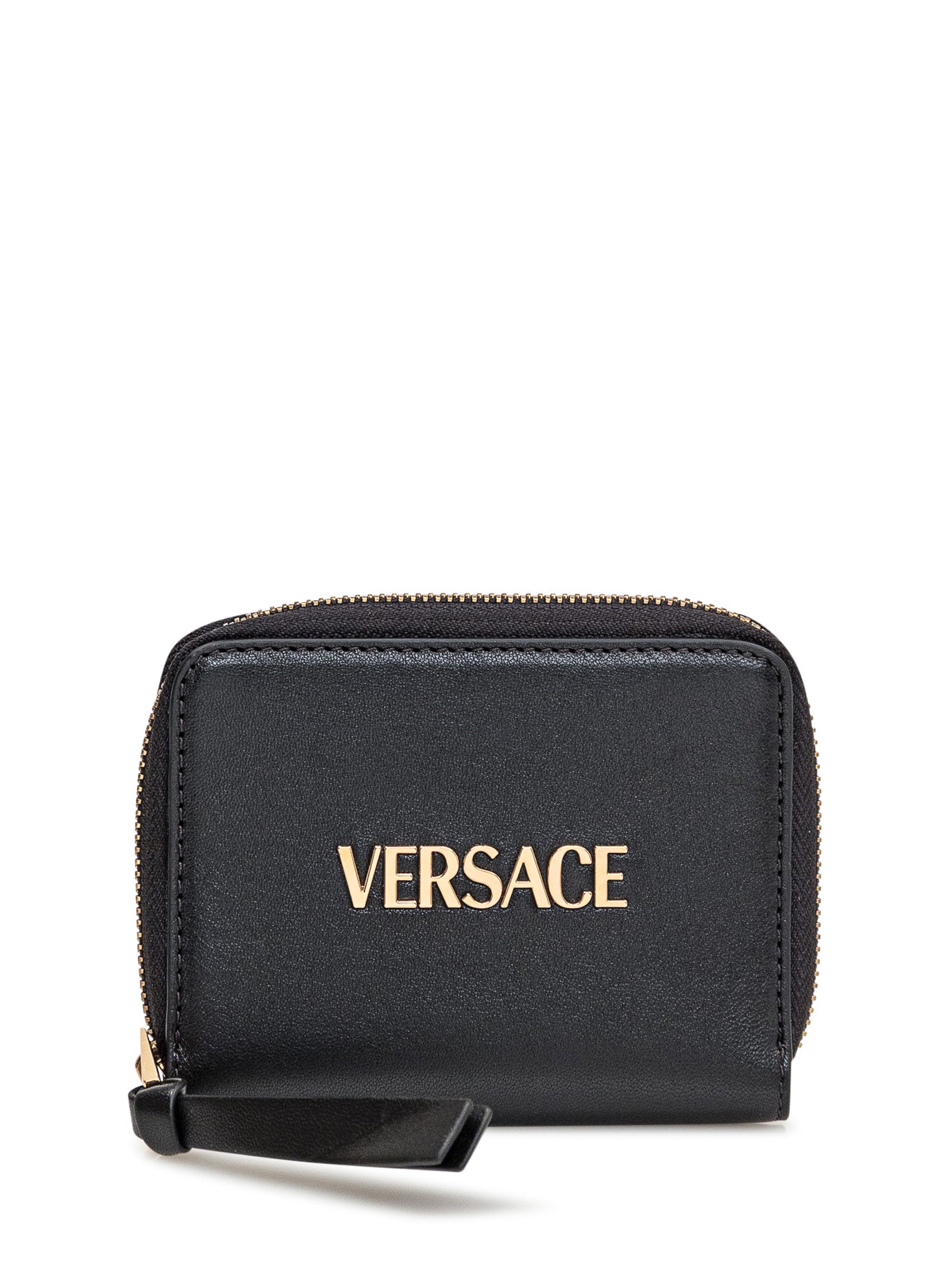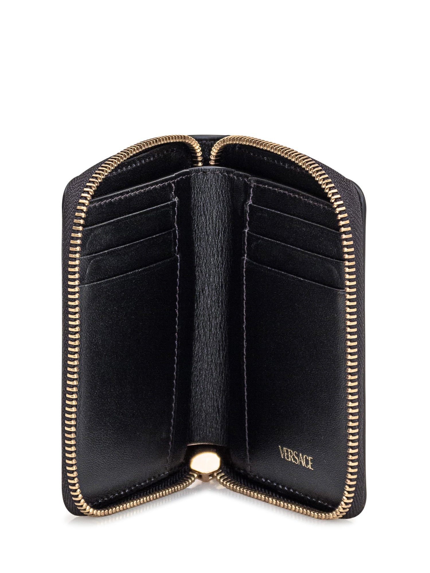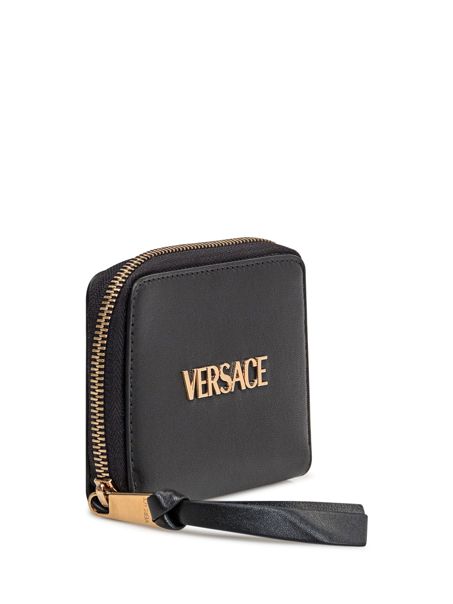 Portafoglio nero in pelle. Logo versace applicato. Scomparti interni. Chiusura con zip.