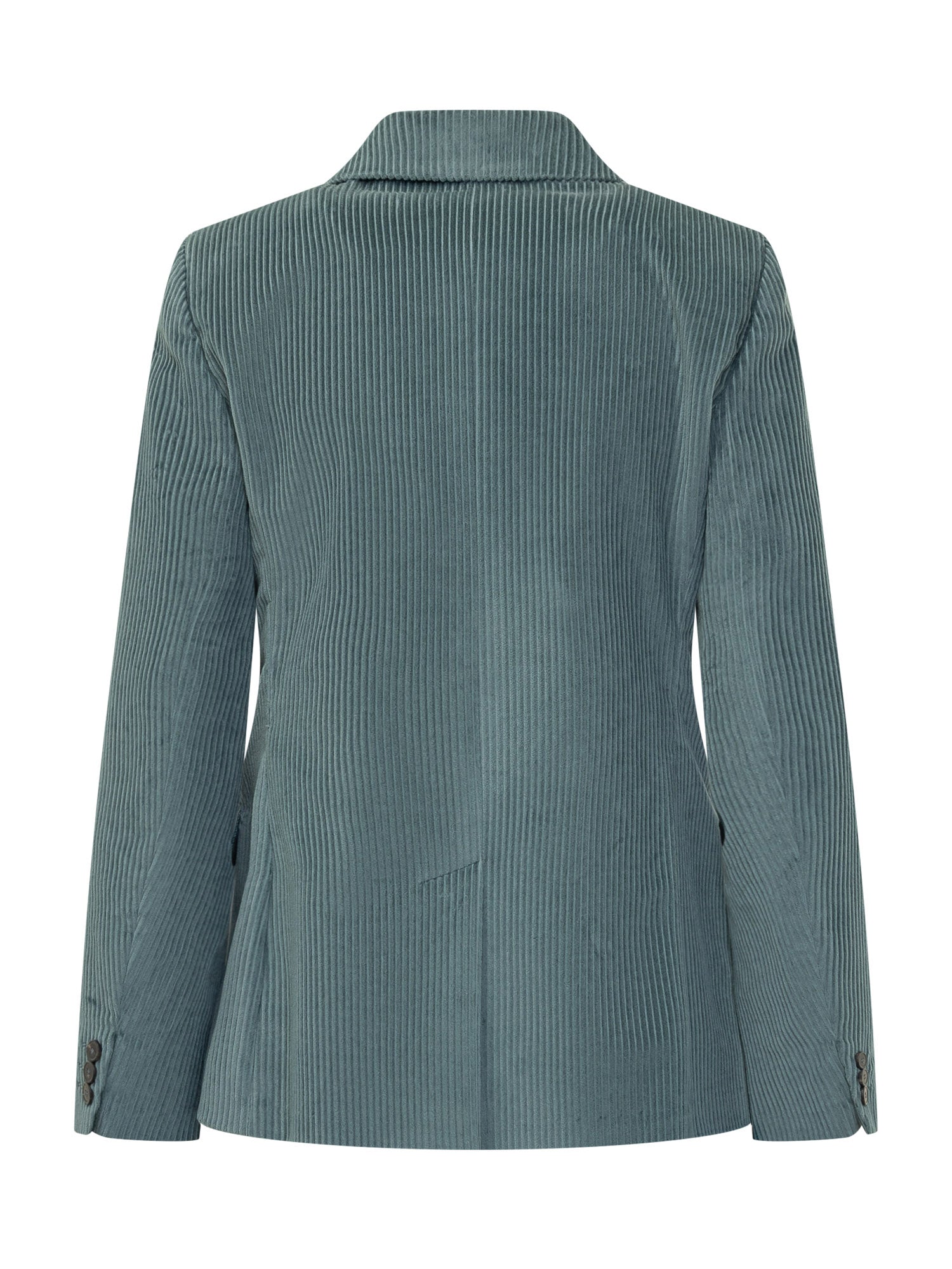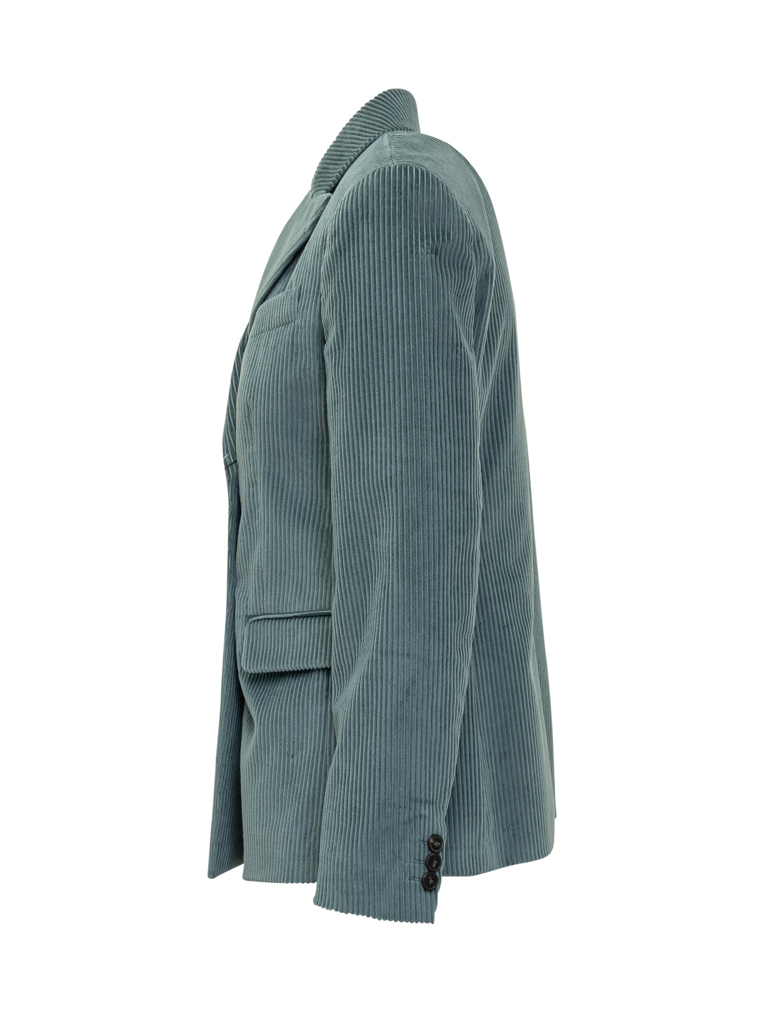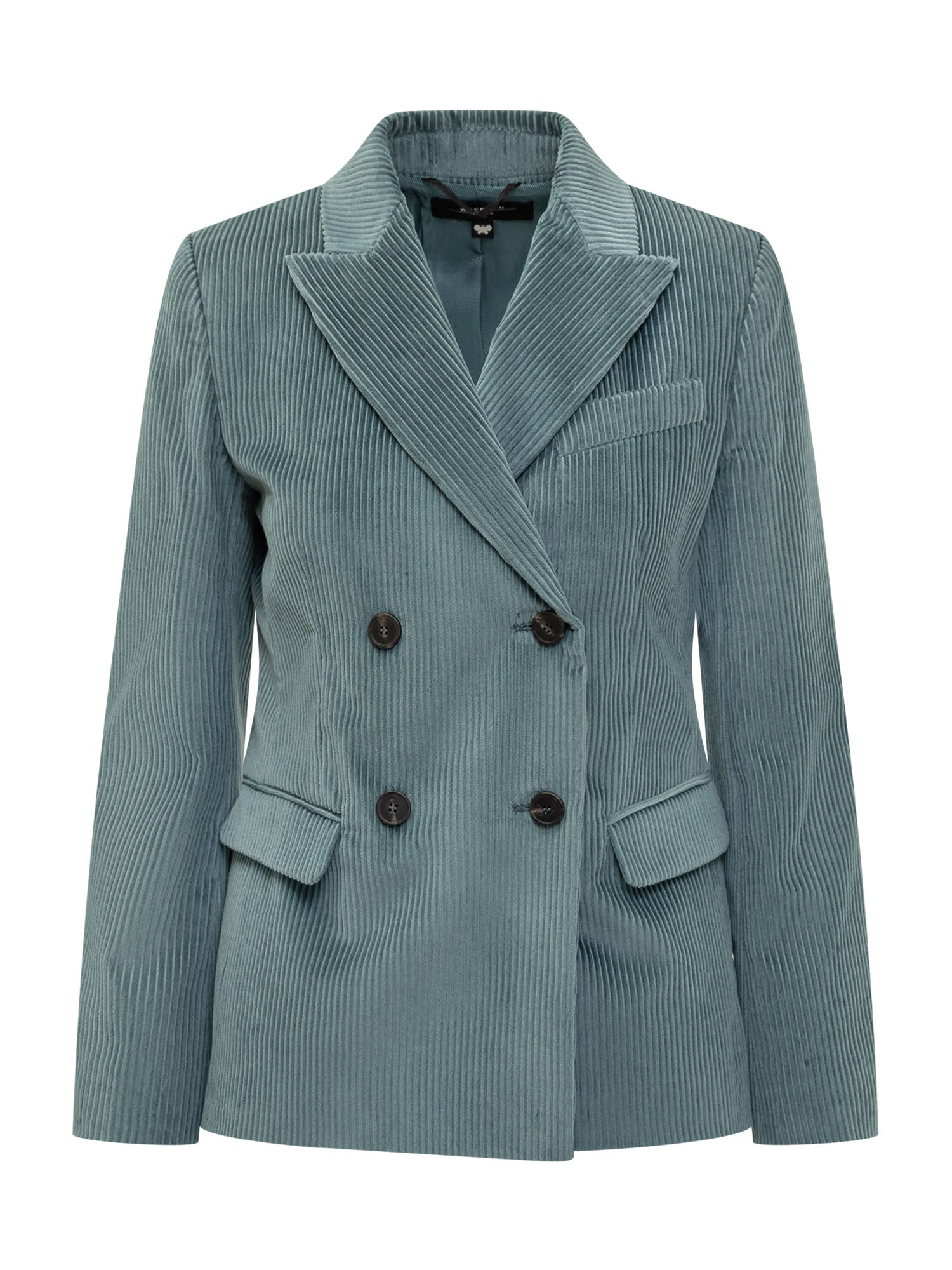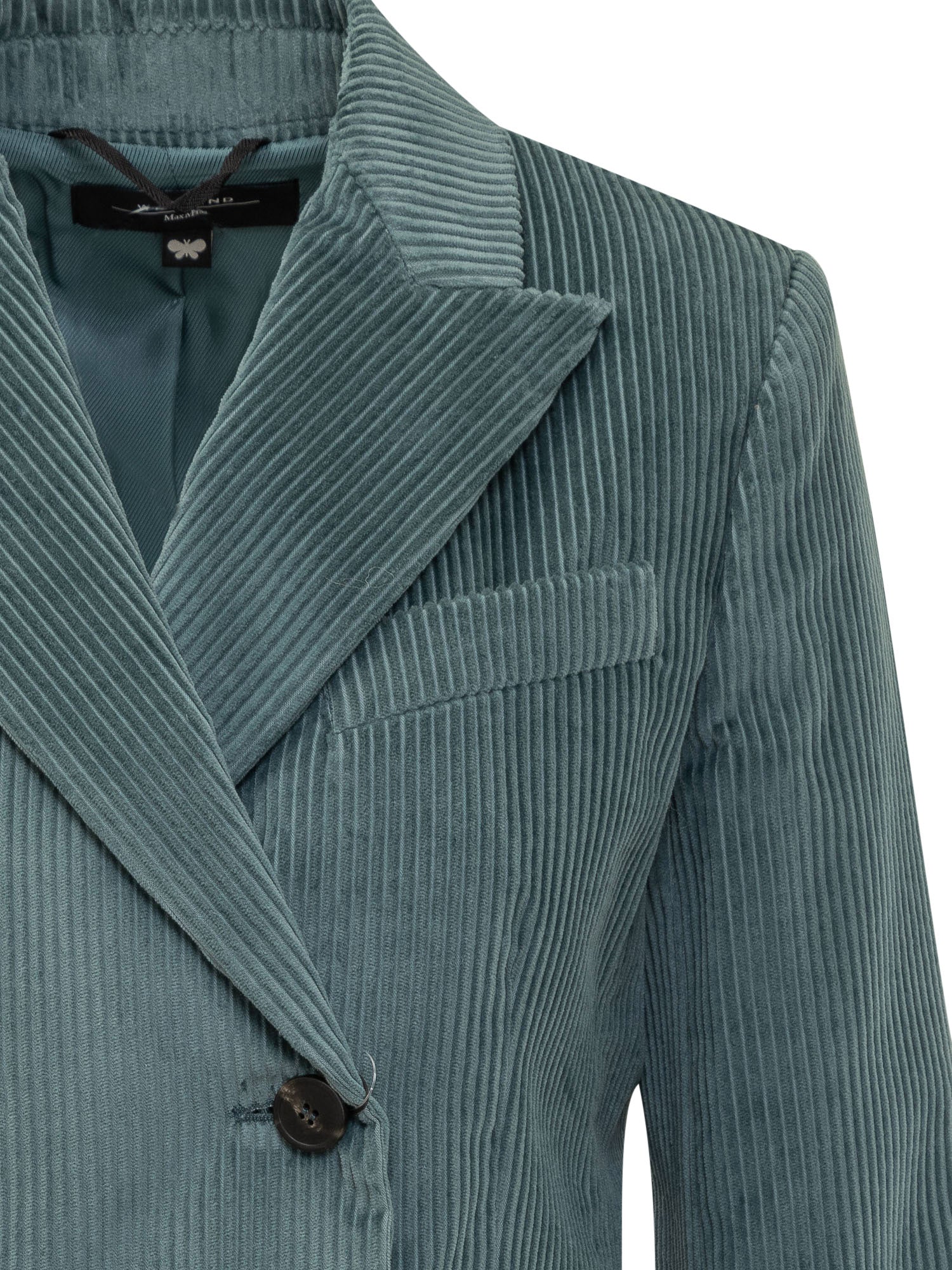 Giacca Weekend Max Mara doppiopetto in velluto a coste verde, con rever classico e tasche con patta.