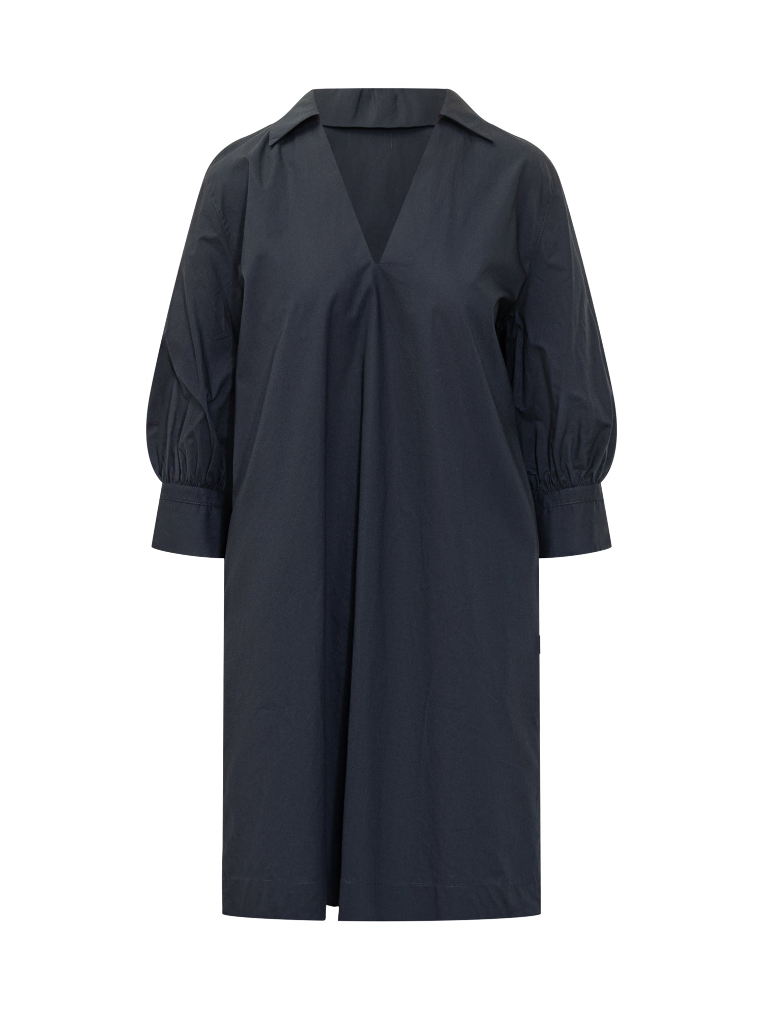 Realizzato in popeline di puro cotone. Colletto classico. Scollo a V. Tasche laterali. Polsini con bottoni. Etichetta sul lato.