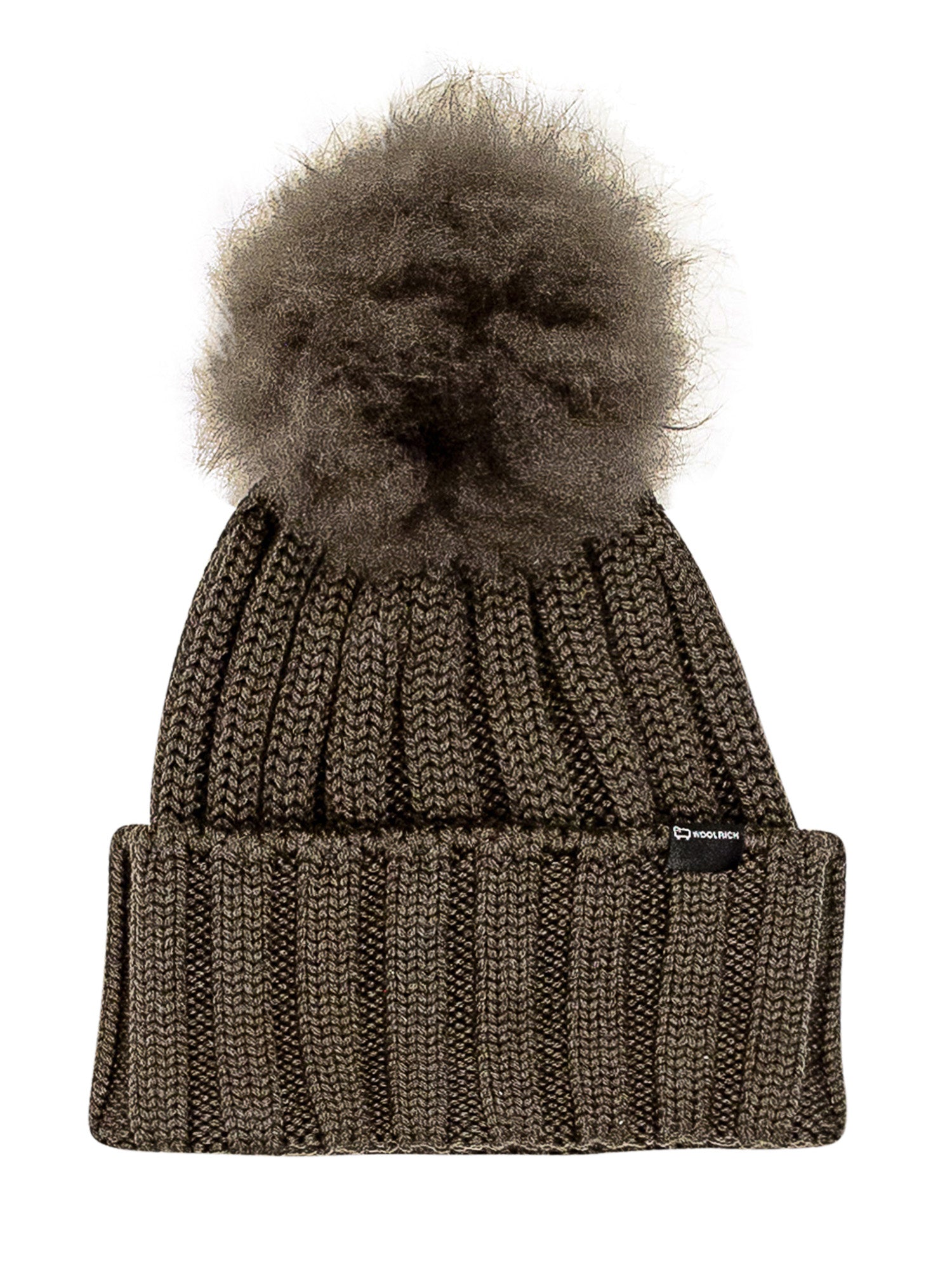 Cuffia verde a costine con Pon Pon. Patch Logo sul davanti.