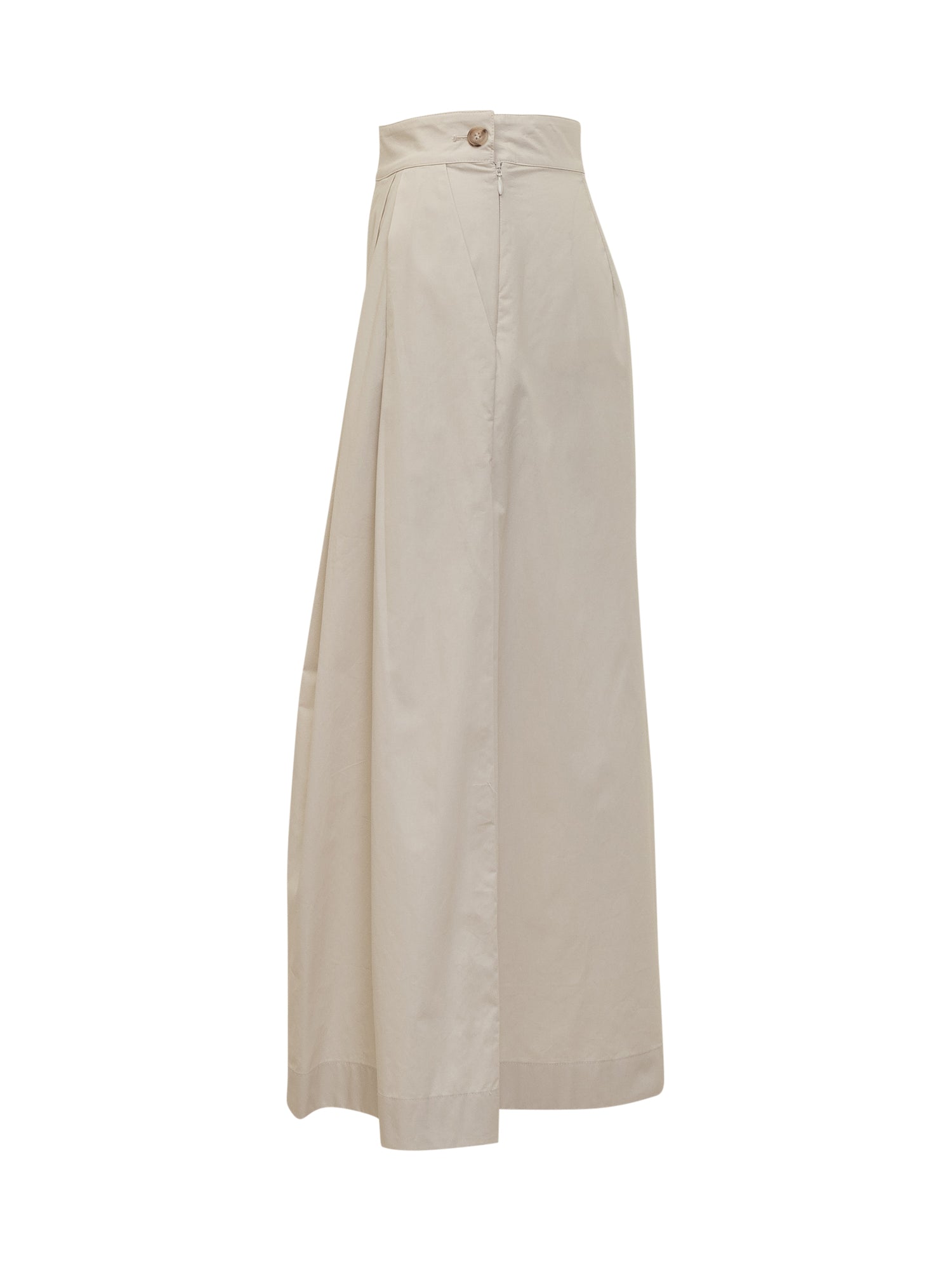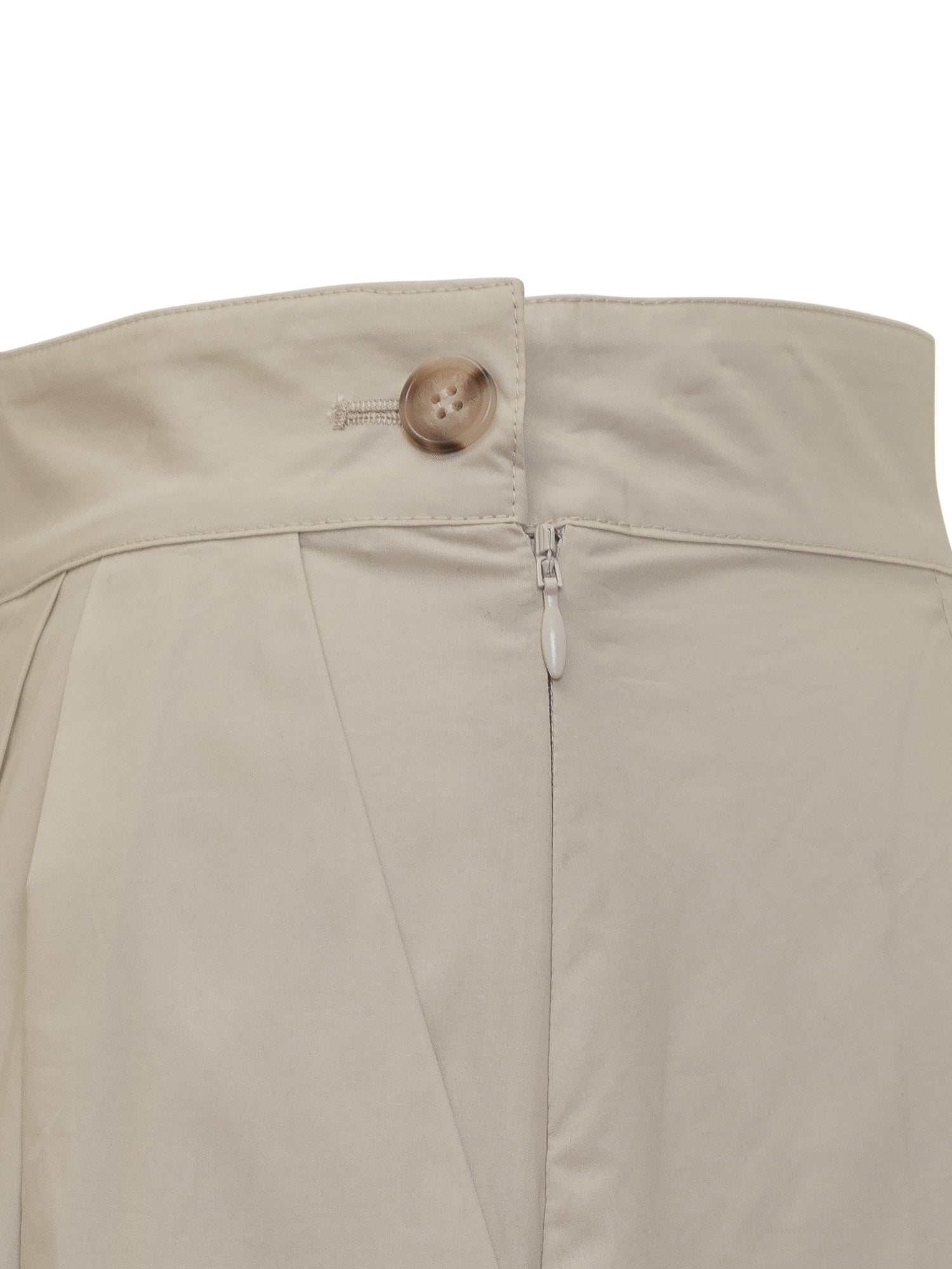 Realizzata in popeline di puro cotone. Chiusura con zip e bottone logato sul lato. Pieghe sul davanti. Tasche a filetto.