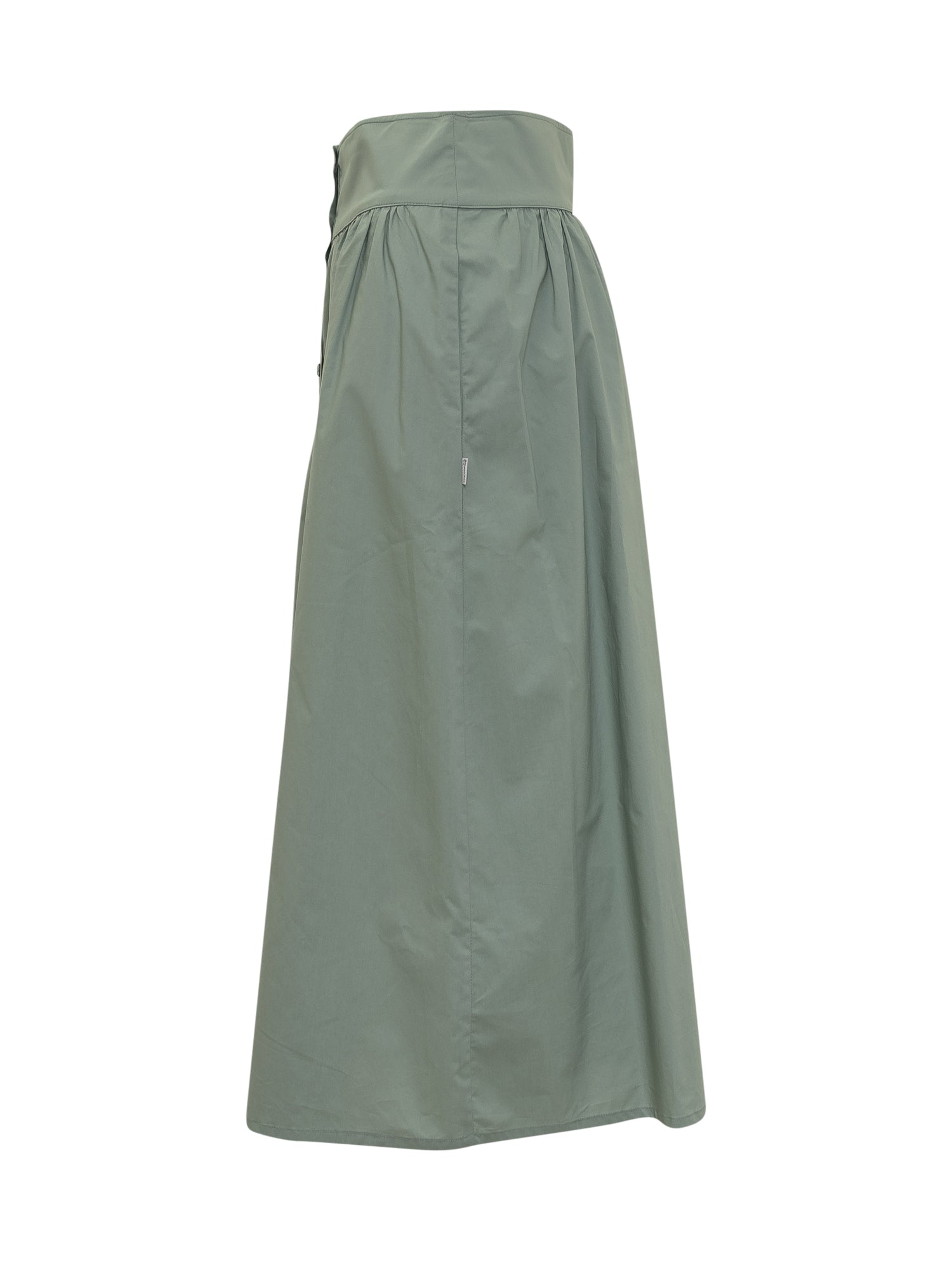 Gonna lunga in cotone. Chiusura con bottoni. Targhetta logo sul lato.