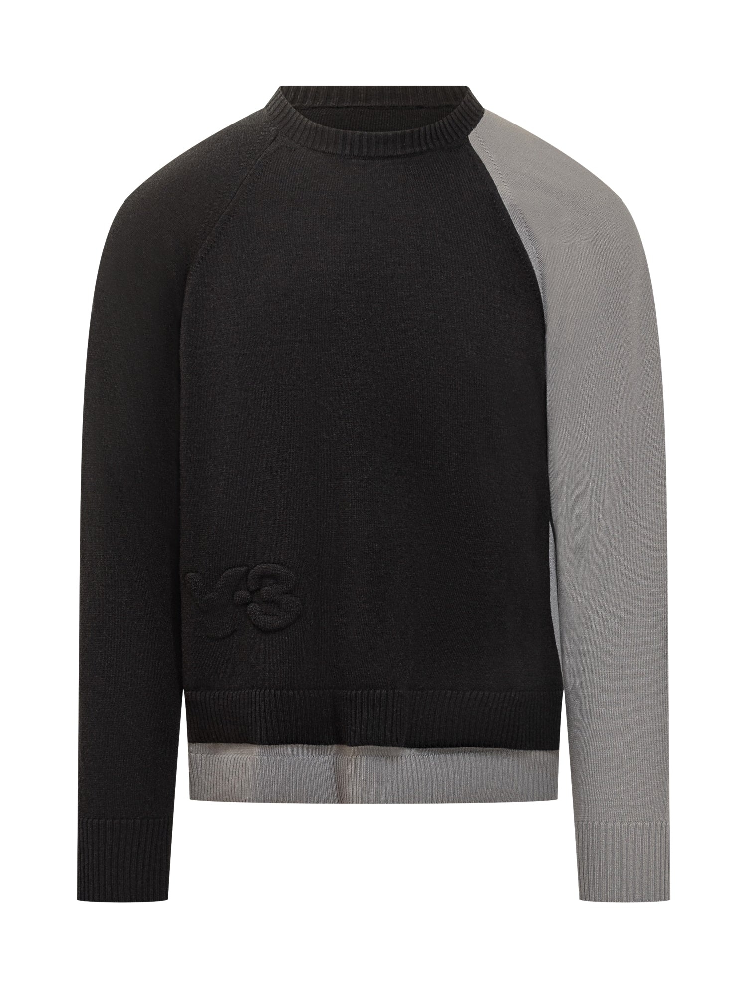 Felpa Y-3 in maglia con maniche a contrasto, logo ricamato tono su tono e fondo a doppio colore.