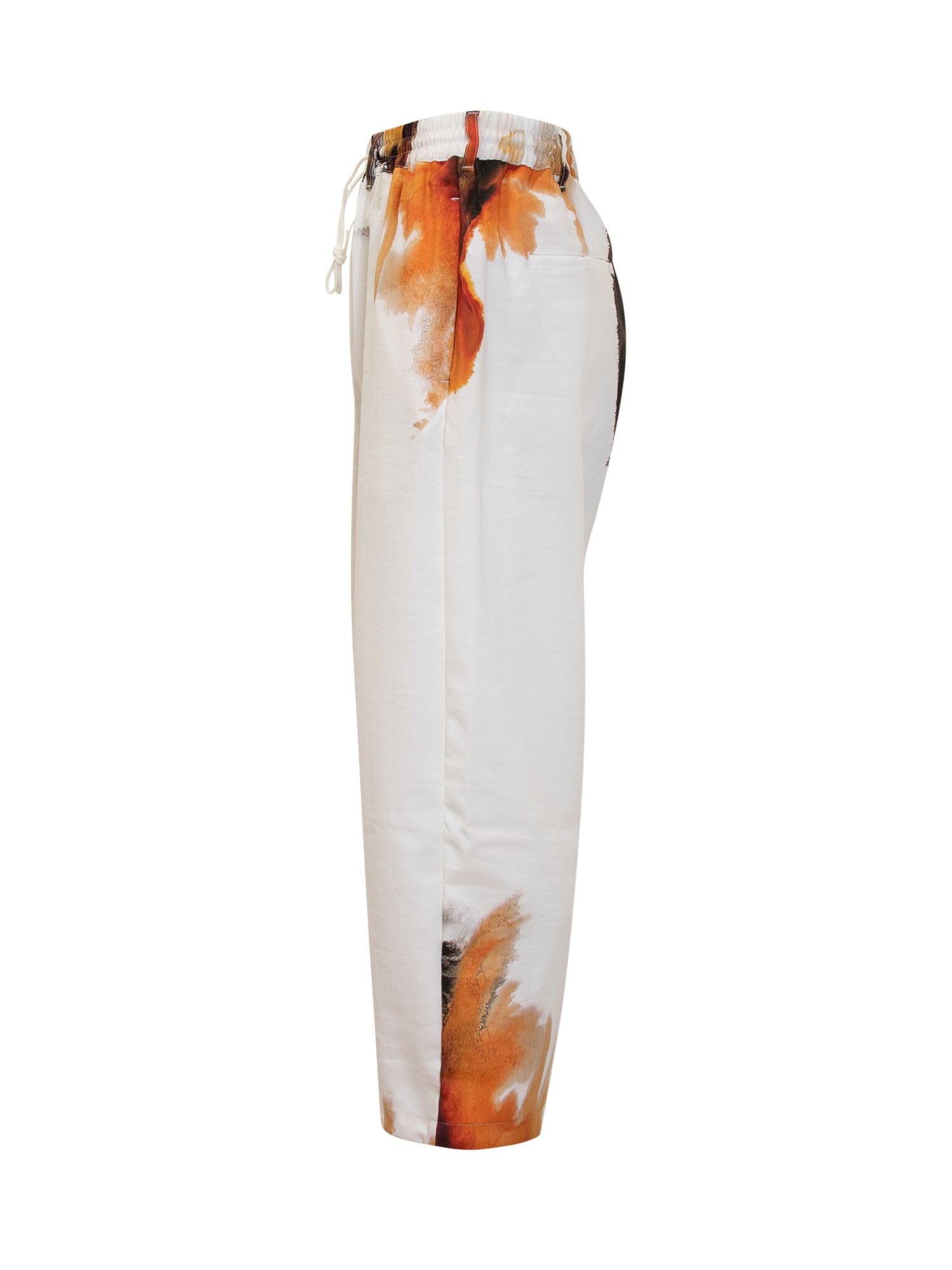 Pantaloni Y-3 in tessuto leggero con stampa artistica all-over. Modello relaxed fit con vita elasticizzata e coulisse.
