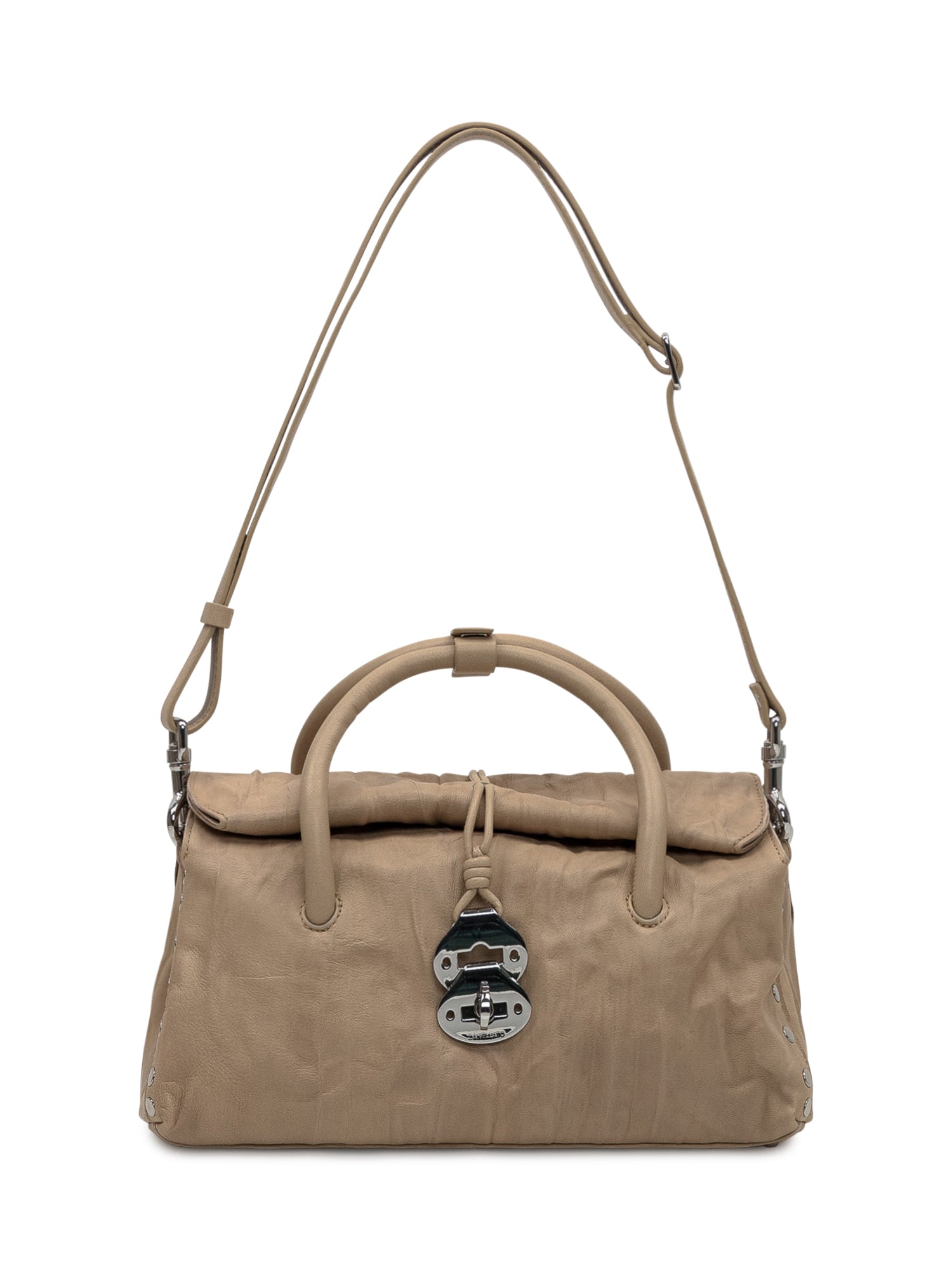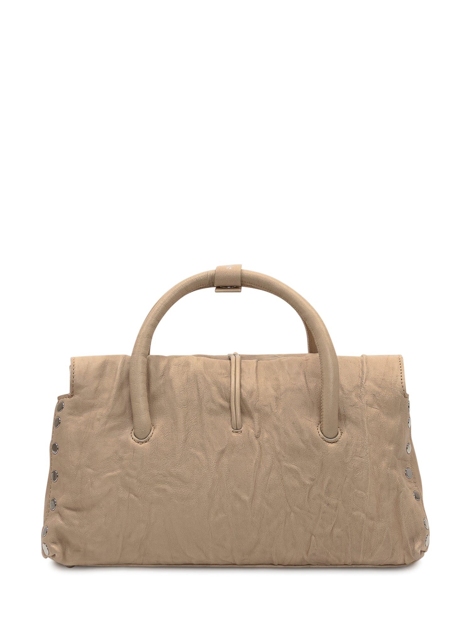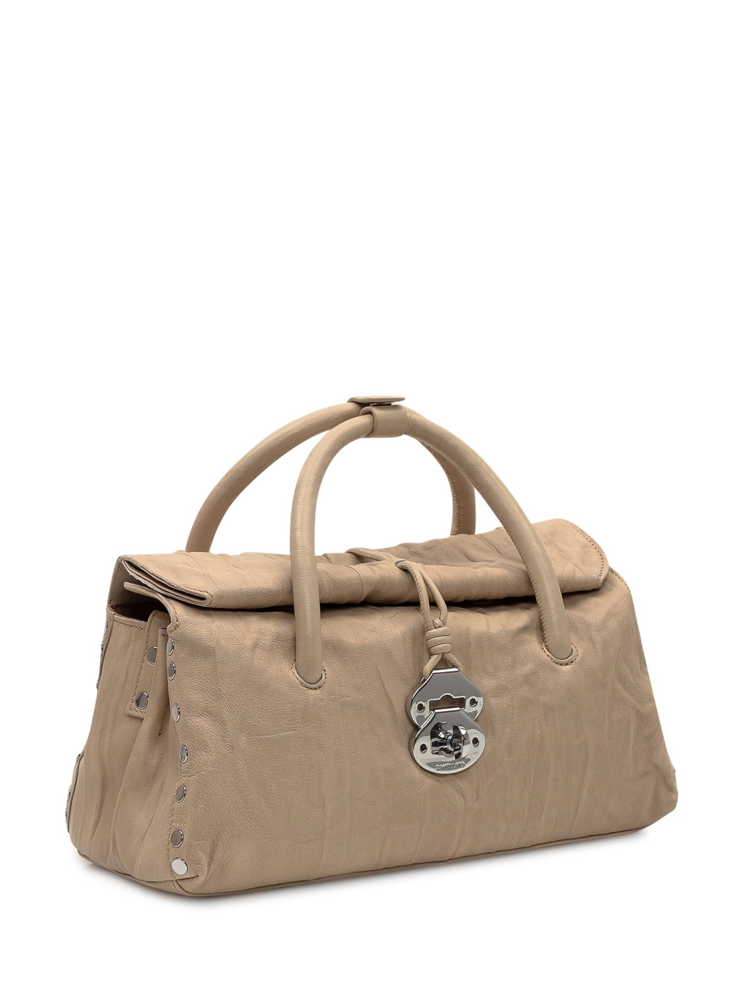 Borsa a mano Santoni in pelle beige con manici arrotondati e chiusura metallica.
