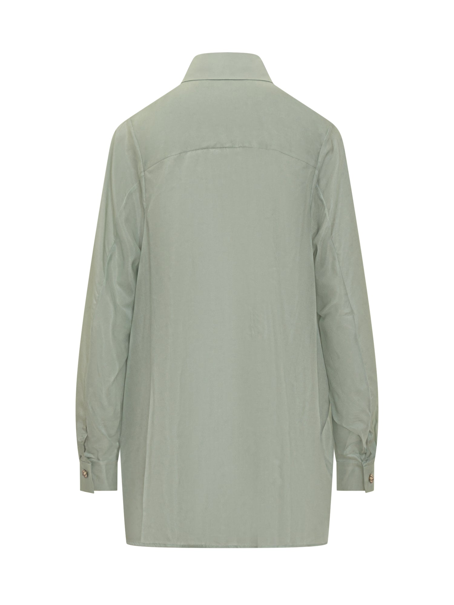 Coco Relaxed Shirt di Zimmermann in cotone verde salvia con stampa floreale e bottoni gioiello.